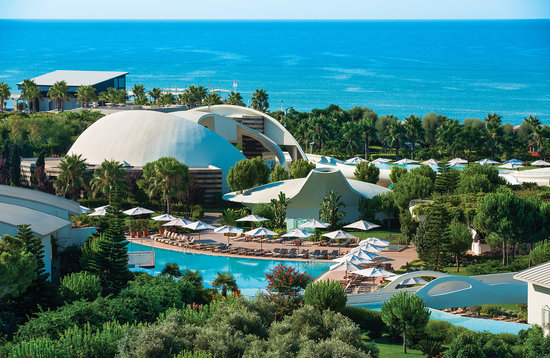Cornelia Diamond is a 5 Star luxury Golf & Spa Resort based on 200.000 sqm of land. The hotel has a wide selection of different types and styles of rooms, villas and suites. The resort boasts a 250 sqm private beach and 8 pools including indoor, aquapark and childrens pool and jacuzzis. With a total of 10 restaurants (8 a la carte) the cuisine ranges from traditional Turkish to Far East and has 10 bars.