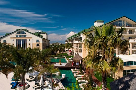 I will start by saying that this was a great experience for us (family of 2 + 2 kids below 10 years of age), as the hotel covers anybody's needs. We were welcomed in a somewhat separate area, connected by a bridge to the main building and pool areas. This separate building is more luxurious at first glance, more quiet and has separate restaurant (for breakfast and dinner, if you want to avoid the more crowded main restaurant), separate pool, patisserie and a big bar. The resort had many bars (even a sports bar where we watched Euro 24 games), has many pools, great beach area and waterslides for kids and for adults. You can't get bored, thirsty, or hungry, as you have everything everywhere (starbucks, snacks, ice cream, cocktails, etc.). The food is varied and delicious and the drinks give you a wide choice (many imported quality drinks). You have a lot of daily activities like water polo, archery, volleyball, football) and evening shows are great. If there is one negative thing that I would mention, is that this is the most pro-Russian hotel I have ever seen. I have been in more than 10 hotels in Turkey, I know that russians are in big numbers there, but Dobedan was created solely for russians - russian reception, russian activity crew, russian bartenders and waiters...you could barely find a Turkish staff. Their service is great, so I have nothing bad to say. You just have to accept that you won't be doing too much English talking around the resort - during our 8 days stay, we only encountered 3 Romanian families and one Arab family - the rest, russian speakers. Anyway, overall, amazing time, great hotel, would recommend anyone to try it.