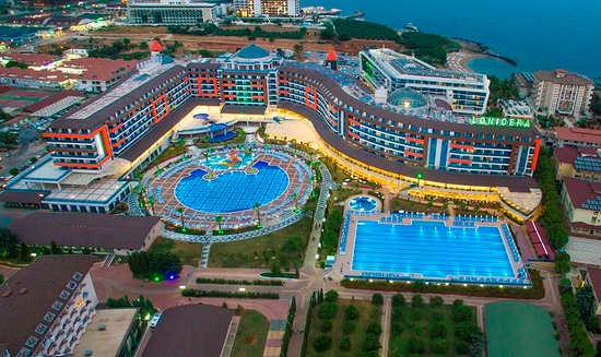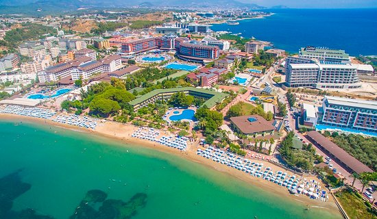 Institution:.We are situated on the Fuğla cove directly at the seaside with a gently sloping sandy beach. From the main street you can take always taxis or busses. The distance to shopping facilities is approximately 5 minutes by walk. Our hotel is working with the all-inclusive system and offers the best comfort in every way. Buldings consist of 3,4 and 5 floors and are equipped with a modern and attractive lobby which invite you to relax. The hotel has a large plant garden as well as a zoo, free WI-FI and different shops which make a comfortable and relaxed holiday possible.Housekeeping: The rooms are cleaned daily, towels change everyday, the bed linen is change three times per week.Rooms: Balcony, shower or bathtub, toilet, hairdryer, telephone, satellite TV with music, info and international channels, baby bed, lamite,ceramic floor, or carpet, safe for rent, minibar ( filled up once a day with water and soda), Electric: 220 V, 24 hours warm-cold split air conditioning, free wi-fi.Activities: 6 days in the week during the day and at night different shows. Mini club (4-12 years)., mini disco, casually beach partys, cinema (home theater – for 30 pax), water polo, aerobic, water aerobic, step, boccia, dart, 4 table tennis, 2 soft tennis courts, volleyball, beach volleyball, basketball, gala nights, air rifle, playground, game room, hamam, sauna, steam room, TV corner, Disco, professional fitness center, Chargeable services: Safe in the room, baby carriage, laundry service, pavilion, massage, peeling, hairdresser, doctor, lighting of the tennis courts, trampoline, billiard, pinball, Game Center, internet cafe,, shopping availibilities, watersports (private providers), , 65*110 football field (with grass), 30*70 training field (with grass) and 4 professional sand tennis courts.