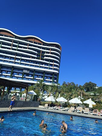 24-Hour Check-in, 24-Hour Front Desk, 24-Hour Security, Aerobics, Air conditioning, Airport transportation, Arabic, Babysitting, Banquet Room, Bar/Lounge, Bath / Shower, Bathrobes, Beach Access, Beachfront, Bottled Water, Breakfast Available, Breakfast Buffet, Breakfast included, Business center, Cable / Satellite TV, Children's Playground, Clothes Rack, Complimentary Tea, Complimentary Toiletries, Concierge, Conference Facilities, Darts, Dry Cleaning, English, Entertainment Staff, Evening Entertainment, Family Rooms, Fitness / Spa Locker Rooms, Fitness center, Fitness Classes, Flatscreen TV, Free Internet, Free parking, Free Wifi, German, Hammam, Heated pool, Highchairs Available, Housekeeping, Indoor Play Area for Children, Indoor pool, Infinity Pool, Infirmary, Internet, Karaoke, Kid-Friendly Buffet, Kids Activities, Kids Club, Kids pool, Kids' Meals, Kids' Outdoor Play Equipment, Laundry Service, Massage, Meeting rooms, Minibar, Nightclub / DJ, Non-smoking hotel, Non-smoking rooms, Outdoor pool, Pool, Pool / Beach Towels, Pool View, Pool with View, Poolside Bar, Private Balcony, Private Bathrooms, Private Beaches, Restaurant, Room service, Russian, Safe, Sauna, Shuttle Bus Service, Snack Bar, Spa, Suites, Sun Loungers / Beach Chairs, Sun Umbrellas, Table Tennis, Telephone, Turkish, Wardrobe / Closet, Water Park, Waterslide, Wheelchair access, Wifi,